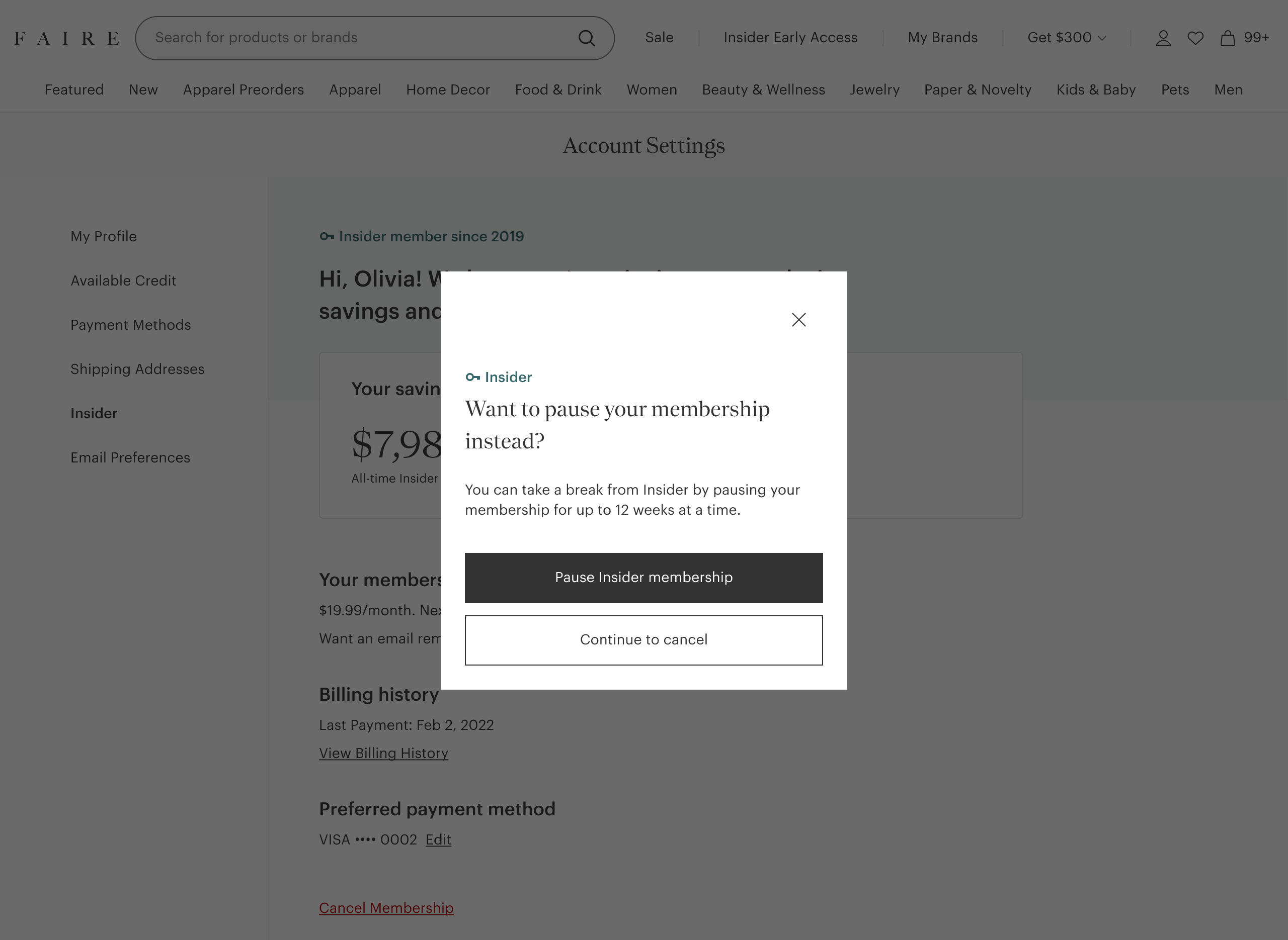 Improve the UX of pausing Insider membership.