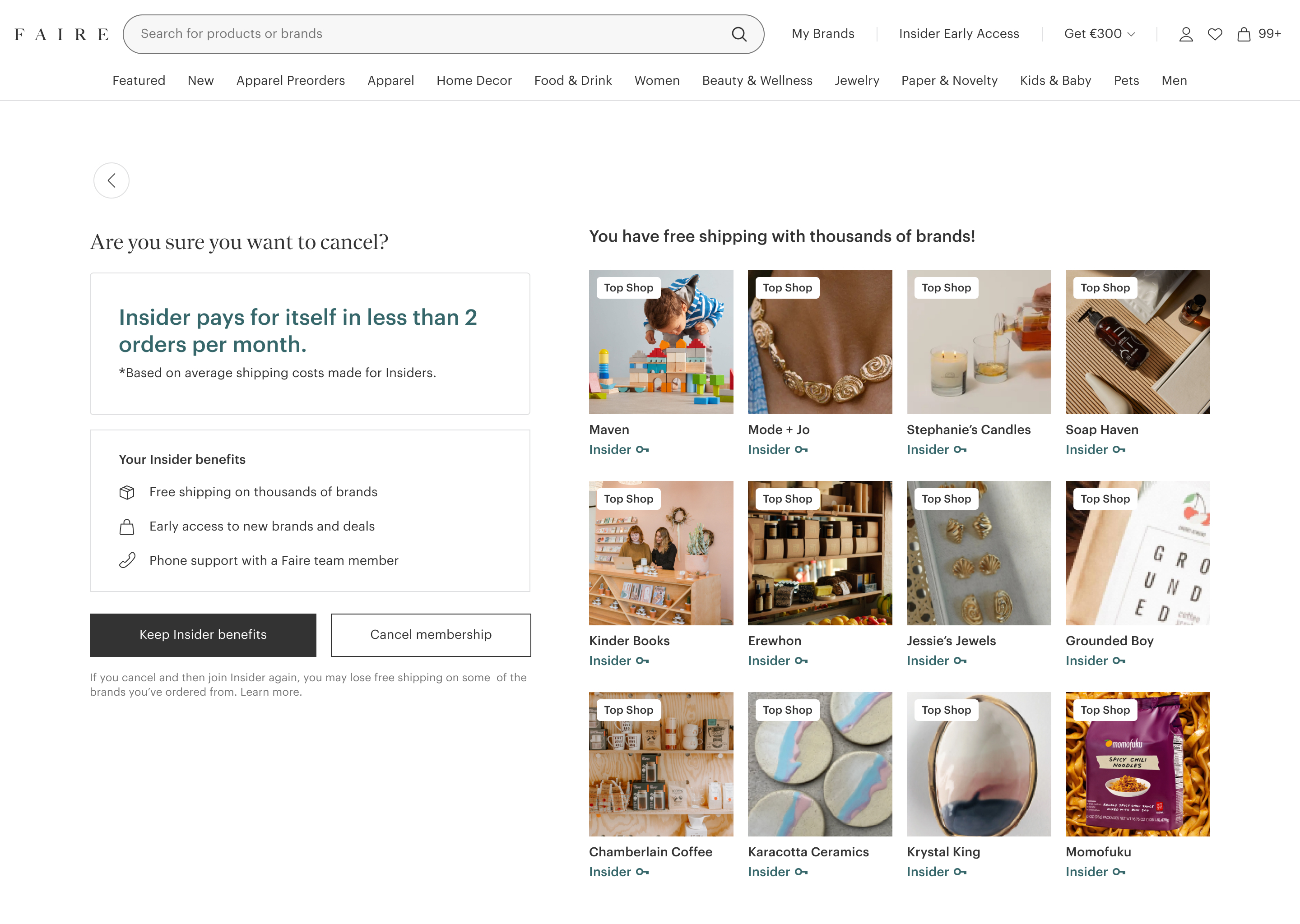 Retailers pay a monthly fee of $19.99 to stay subscribed to the program and gain these benefits. Faire provides free shipping coverage for brands based on shipping distance and also popularity in their category.